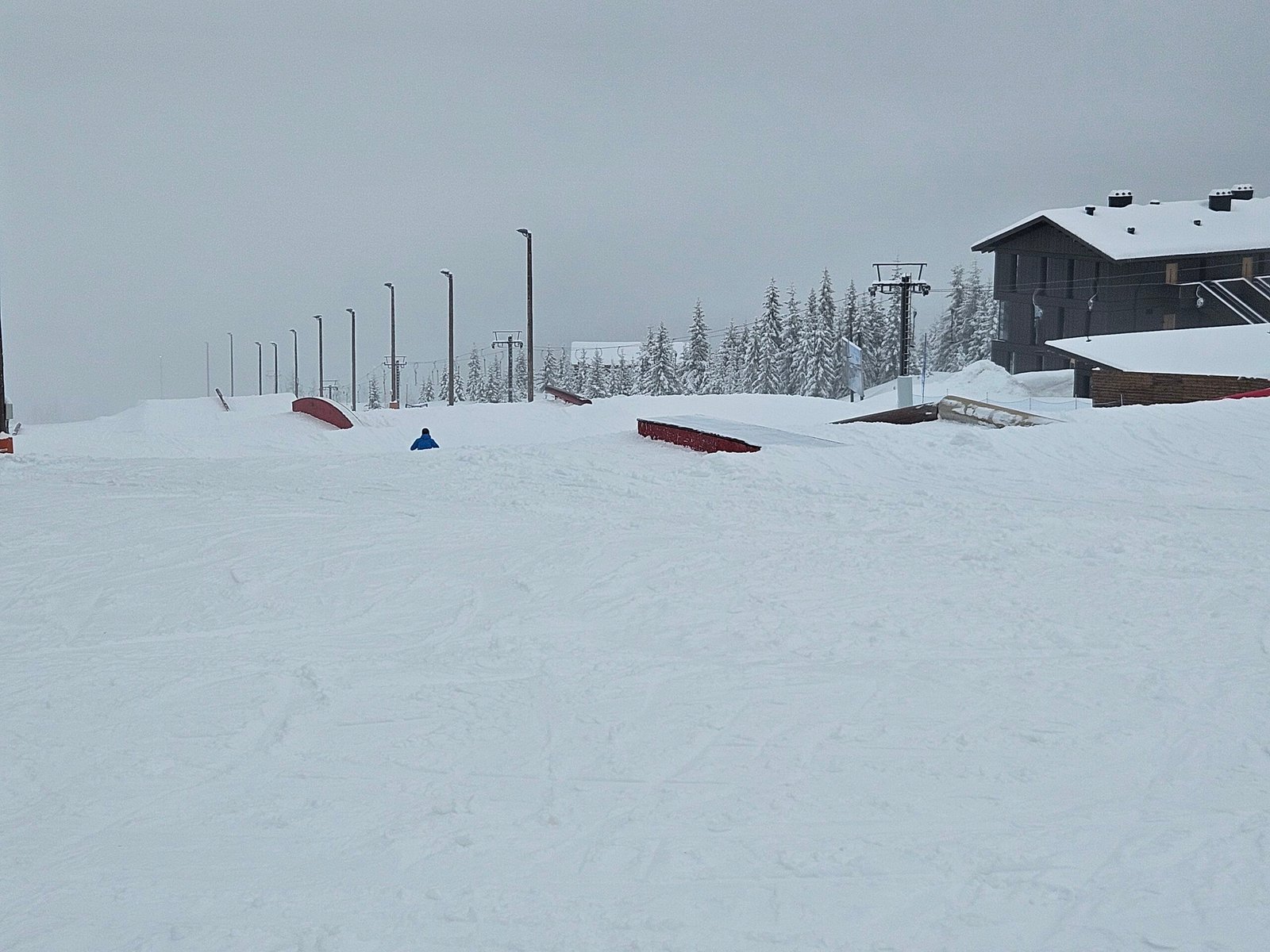 Skimore Kongsberg Ski Resort in Norway is about two hours from Oslo Sentrum via Train/Bus where you can find some very scenic runs through trees and lovely terrain, and a freestyle park with plenty of features for all levels. The banked slalom run is excellent too, so you can test your speed and skill with that. The heated chair lift is an absolute pleasure to keep you warm on the colder days.